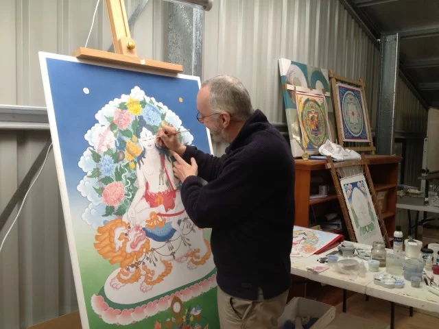 In late October, Garrey Foulkes, arts manager of Chenrezig Institute, shared with Mandala an update about the three projects he manages – the Garden of Enlightenment, the Chenrezig Institute Art Studio and the Enlightenment Project for Purification and Merit – and introduces us to Ray Furminger, artist in residence: