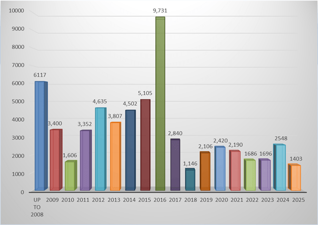- 200 – 0.6m x 0.3m/2ft x 1ft – Prayer wheels mounted directly onto the walls of The Great Stupa, Australia. In progress.