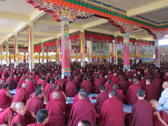 4,000 monks of Sera Lachi offer Druk Chu Ma (64 offerings to Kalarupa to eliminate obstacles), Namgyäl Tong Chö (One thousand sets of offerings to Buddha Namgyälma) and Zangcho (King of Prayers), recitation of the entire Kangyur on Chokhor Duchen.