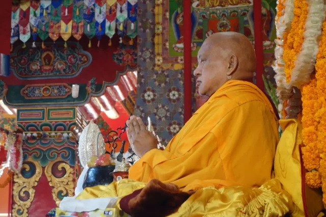 Lama Rinpoche during the long life puja, December 9, 2013, Kopan Monastery, Nepal. Photo Ven. Roger Kunsang.