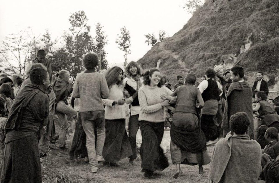 Students celebrating at the end of the 1978 Kopan November Course. Photo courtesy of Michelle Le Dimna.