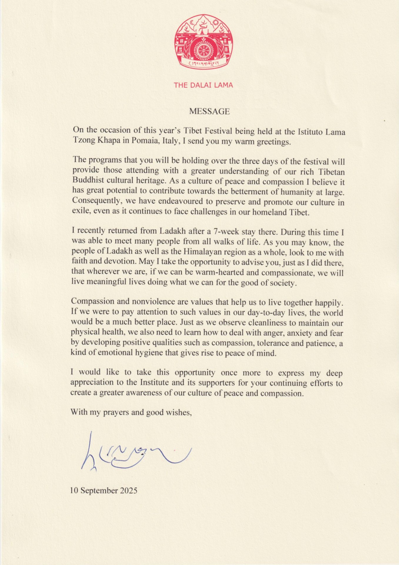 From September 12-14, 2025, Istituto Lama Tzong Khapa (ILTK), Italy, hosted the fifth edition of Festival of Tibet in Pomaia with thousands of participants benefiting from the event. The Tibetan community in Italy was brought together for a weekend of several Dharma teachings, book presentations, Dharma art activities for children, and Tibetan street food. Carlota Pinheiro and Fabiana Lotito share the story:
