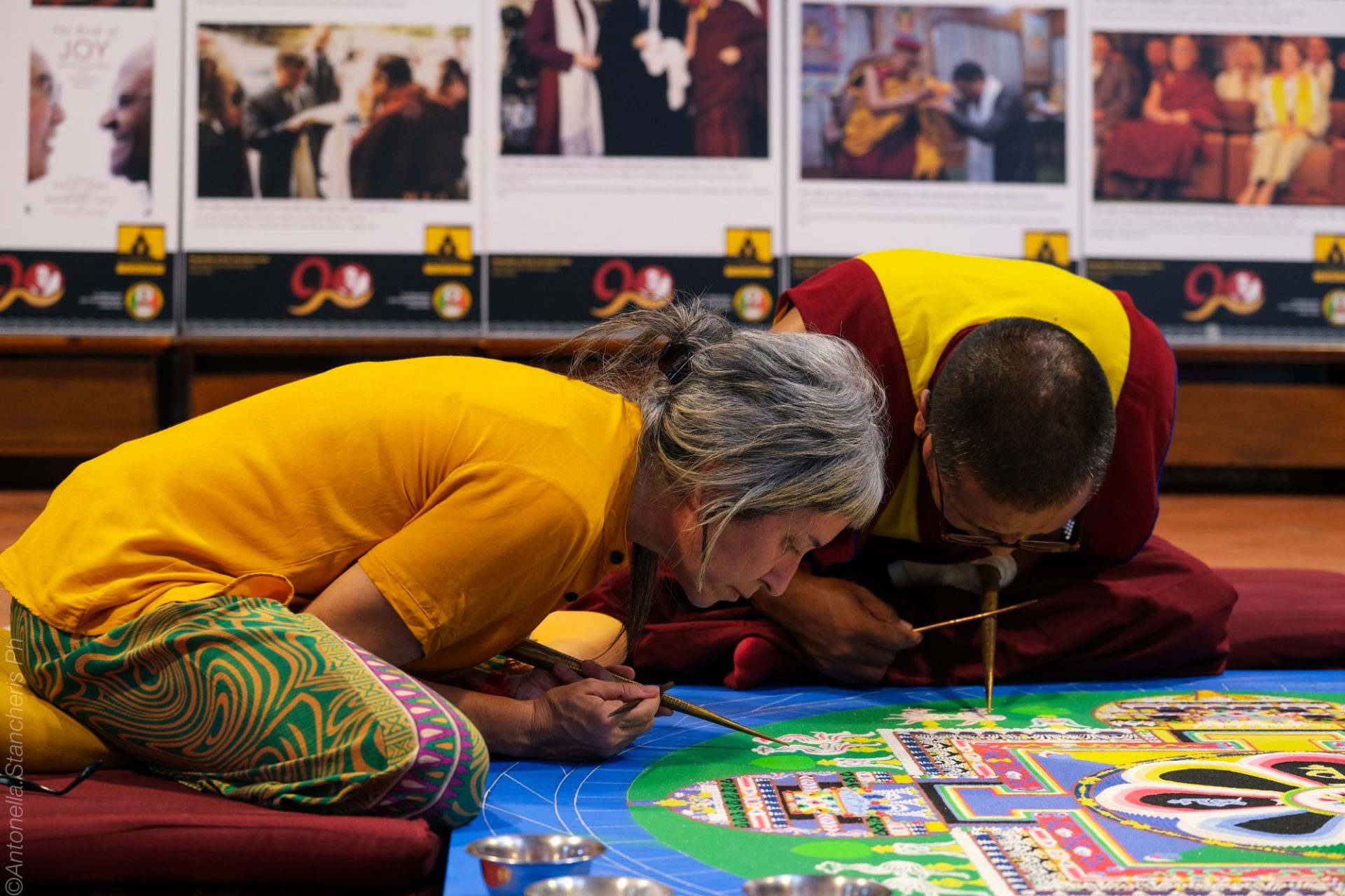 The creation of the sand mandala of Chenrezig for the Festival of Tibet at ILTK. Photo by Antonella Stancheris.