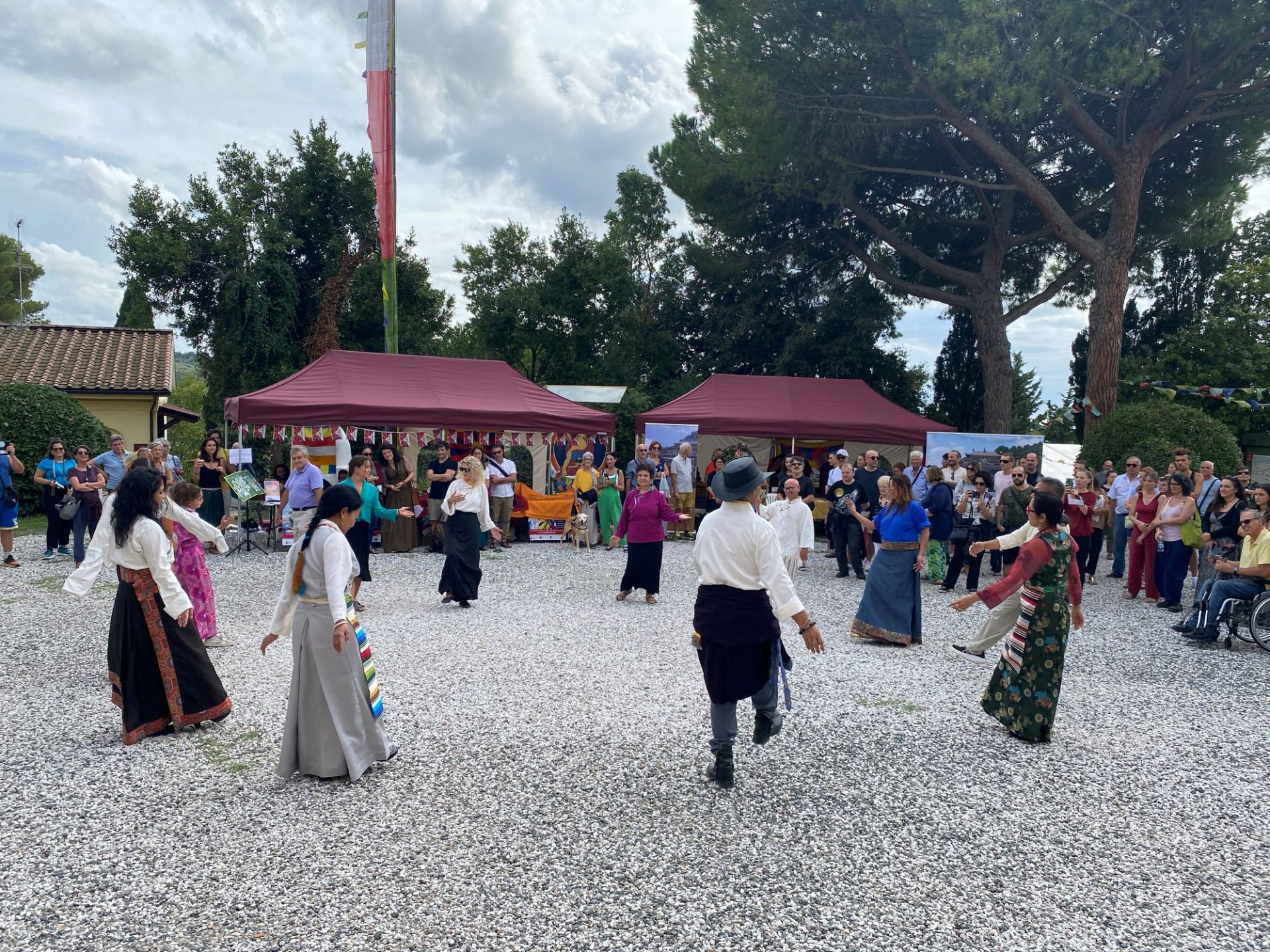 One of the most beautiful aspects of our Tibet Festival was witnessing how many people stepped through our doors for the very first time to encounter Dharma and Tibetan culture. The informal atmosphere created perfect conditions for meaningful encounters, with mantra concerts in the tea garden and stands throughout the courtyard offering diverse ways to connect: sessions on Tibetan Medicine and Yoga, members of the Tibetan community in Italy welcoming visitors, and the Italian association “Dare Protezione” (Giving Protection) offering one-on-one dialogues and support about the death process for oneself and loved ones.