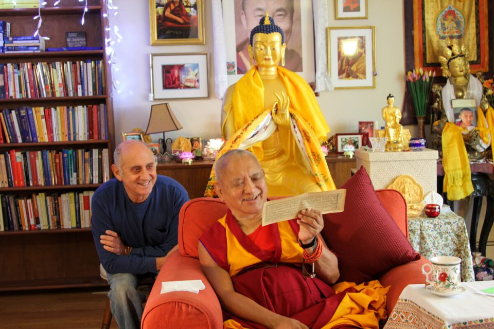 Lama Zopa Rinpoche and Nick Ribush, LYWA gompa and library, Lincoln, MA October 2012. Photo courtesy of LYWA.