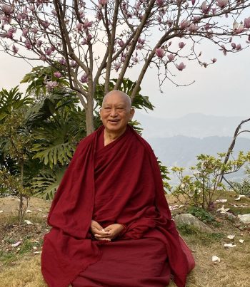 Lama Zopa Rinpoche on Losar, 2021, Kopan Monastery, Nepal. Photo by Ven. Roger Kunsang.