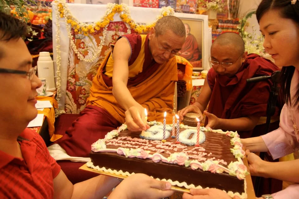On July 22, Amitabha Buddhist Centre (ABC) in Singapore offered a long life puja based on the deity Amitayus for their resident teacher Khen Rinpoche Geshe Chonyi in honor of his 50th birthday. Khen Rinpoche also serves as abbot of Kopan Monastery. During the puja, center members meditated on Amitayus, recited mantras, made a mandala offering and prayed for the long lives of Khen Rinpoche, all their other gurus and for all the students in attendance. ABC has shared photos of the festivities on their Facebook page.