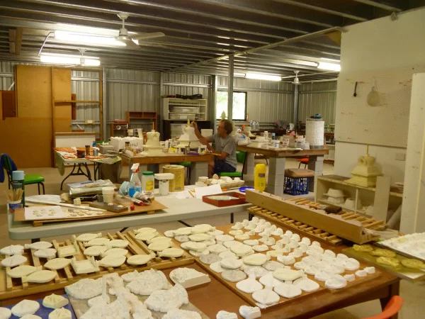The lower level of Chenrezig Institute’s art studio is used for tsa-tsa casting, among other crafts, 2013. Photo courtesy of Garrey Foulkes.