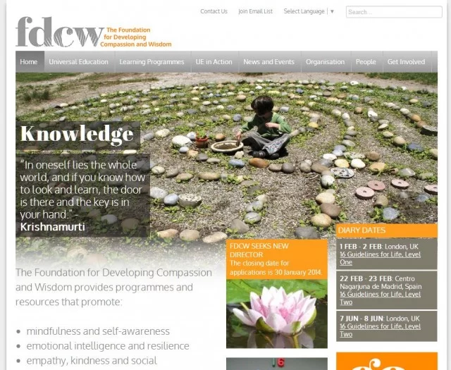 “The new website aims to present a clear and up-to-date overview of our aims and activities for everyone from seasoned UECW ‘elders’ to people who are encountering Universal Education for the very first time,” wrote FDCW director Alison Murdoch. FDCW programs include the 16 Guidelines for a Happy Life, Seven Steps to Knowledge Strength and Compassion, Transformative Mindfulness Methods for Inquiry and Intervention, Corporate-Based Mindfulness Training.