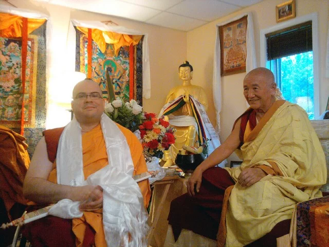 Ven. Losang Dondrub is ordained by Gyumed Khensur Rinpoche Lobsang Jampa, Guhyasamaja Center, Fairfax, Virginia, US, October 2013.