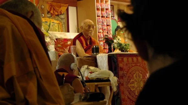 Gyumed Khensur Rinpoche Lobsang Jampa teaches and leads retreat at Guhyasamaja Center, Fairfax, Virginia, U.S., July 2013. Photo courtesy of Guhyasamaja Center.
