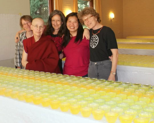 - Group water bowl retreat participants Inge Eijkhout, Ven. Tenzin Chodron, Diana Carroll, Jaclyn Yip, Annette van Citters, March 2014. Photo courtesy of Maitreya Instituut.