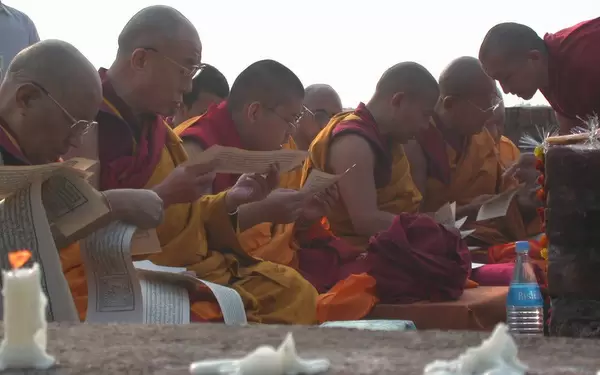 His Holiness the Dalai Lama reading sutra on Vulture’s Peak, India, 2002