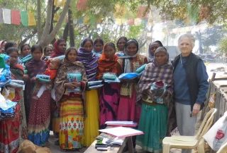 Blanket distribution at MAITRI Charitable Trust, Bihar, India, January 2018. Photo by Phil Hunt.