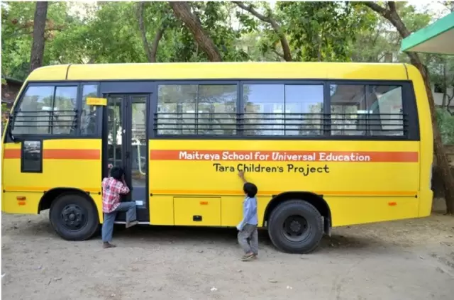 Root Institute, the FPMT center in Bodhgaya, India, helps offer care and education to children through Shakyamuni Buddha Community Health Care Centre, Maitreya School for Universal Education and the Tara Children’s Project (TCP), which takes care of HIV-affected children and orphans. Tara Children’s Project kids and Maitreya School students are benefiting from receiving a new bus to take them to and from school.