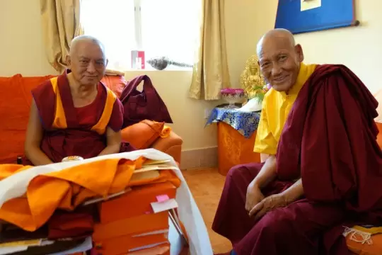 While in Bodhgaya, Lama Zopa Rinpoche met with the attendant of the previous Khunu Lama Rinpoche. Known as the Ladkhi Gen-la, he has been teaching in Mumbai for the past 20 years.