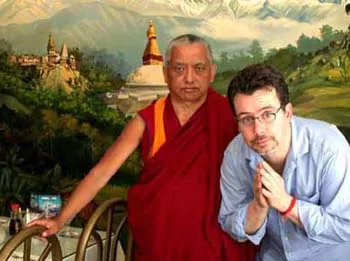 David Gonsalez with his teacher, Lama Zopa Rinpoche, in a Tibetan restaurant in Seattle, Washington, United States