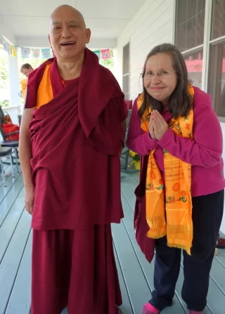 Lama Zopa Rinpoche and Mayra Rocha Sandoval, Light of the Path, Black Mountain, North Carolina, USA, May 2014. Photo by Sarah Brooks.