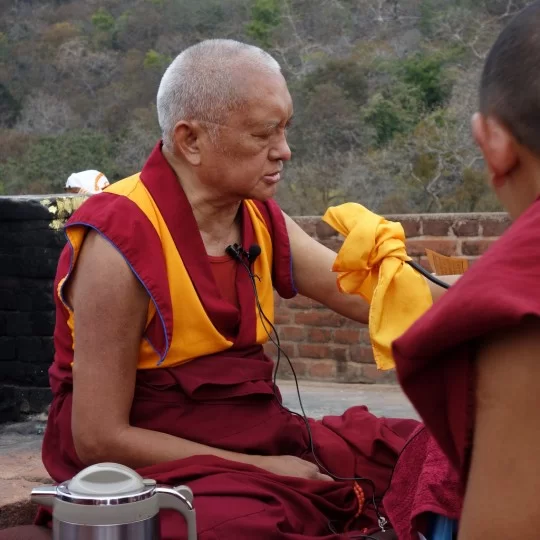 While in India during the Days of Miracles, Lama Zopa Rinpoche gave an oral transmission of the Vajra Cutter Sutra on Vulture’s Peak. After the transmission, he led the group of students who had come with him to Vulture’s Peak from Root Institute in a meditation on emptiness.
