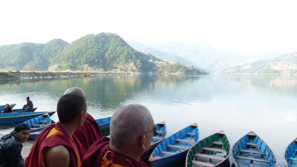 Lama Zopa Rinpoche looks out over Lake Begnas, Pokhara, Nepal, February 2012. A 33-meter (108-foot) high Guru Rinpoche statue is planned to be built on the lake, which is about 3/4 hours by car from the Pokhara Centre. Photo courtesy of Gaden Yiga Chozin.