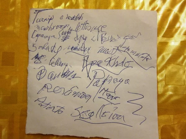 After manifesting a stroke in April 2011, Lama Zopa Rinpoche has been striving to increase mobility and dexterity in the right side of the body, particularly in his right hand. Rinpoche has made huge progress. But one night, he wrote a nearly undecipherable grocery list for his attendants, somehow having “lost” (they came back the next day) all his improved writing skills.