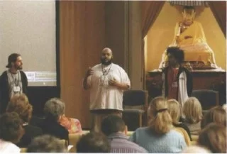 Andres Gonzalez, Ali Shah Rasool Smith and Atman Ananda Smith, co-founders of the Holistic Life Foundation, at the Garrison Institute’s Education Symposium. HLF works with severely at-risk youth in East Baltimore, offering yoga and meditation in after school programs, and is involved in a study of the effects of the meditation on children’s cognitive, attentional, coping, academic, and behavioral skills.