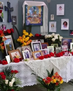 On September 18, 2010, the courtyard at Cittamani Hospice Service, Queensland, Australia was transformed into a serene and spiritually welcoming space for more than 60 people who attended the Annual Memorial Service. Stuart Ransom’s shakuhachi flute notes welcomed families and friends who had lost loved ones, many of whom brought a photo to place on the altar, or a red rose-bloom in their memory.