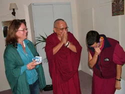 Rinpoche, Ven. Kaye, and Claire share a joke