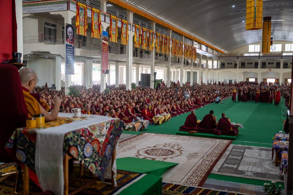 His Holiness the Dalai Lama arriving at the final session of the annual Winter Jang Debate at Drepung Monastery, January 18, 2026. Photo by Tenzin Choejor/OHHDL; courtesy of dalailama.com